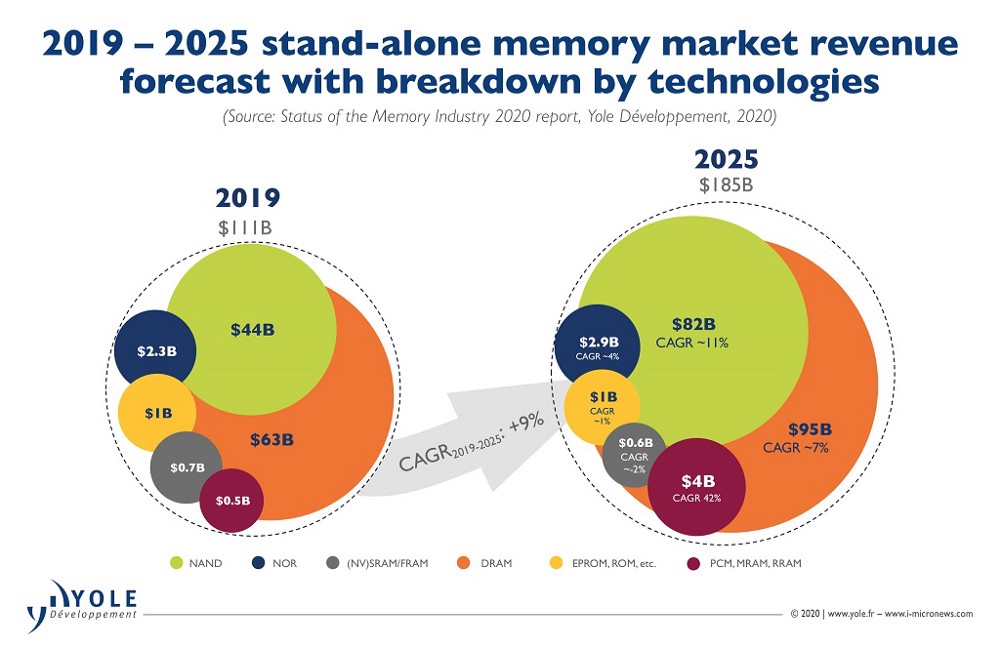 資料來源:Status of the Memory Industry 2020 report, Yole Developpment, 2020