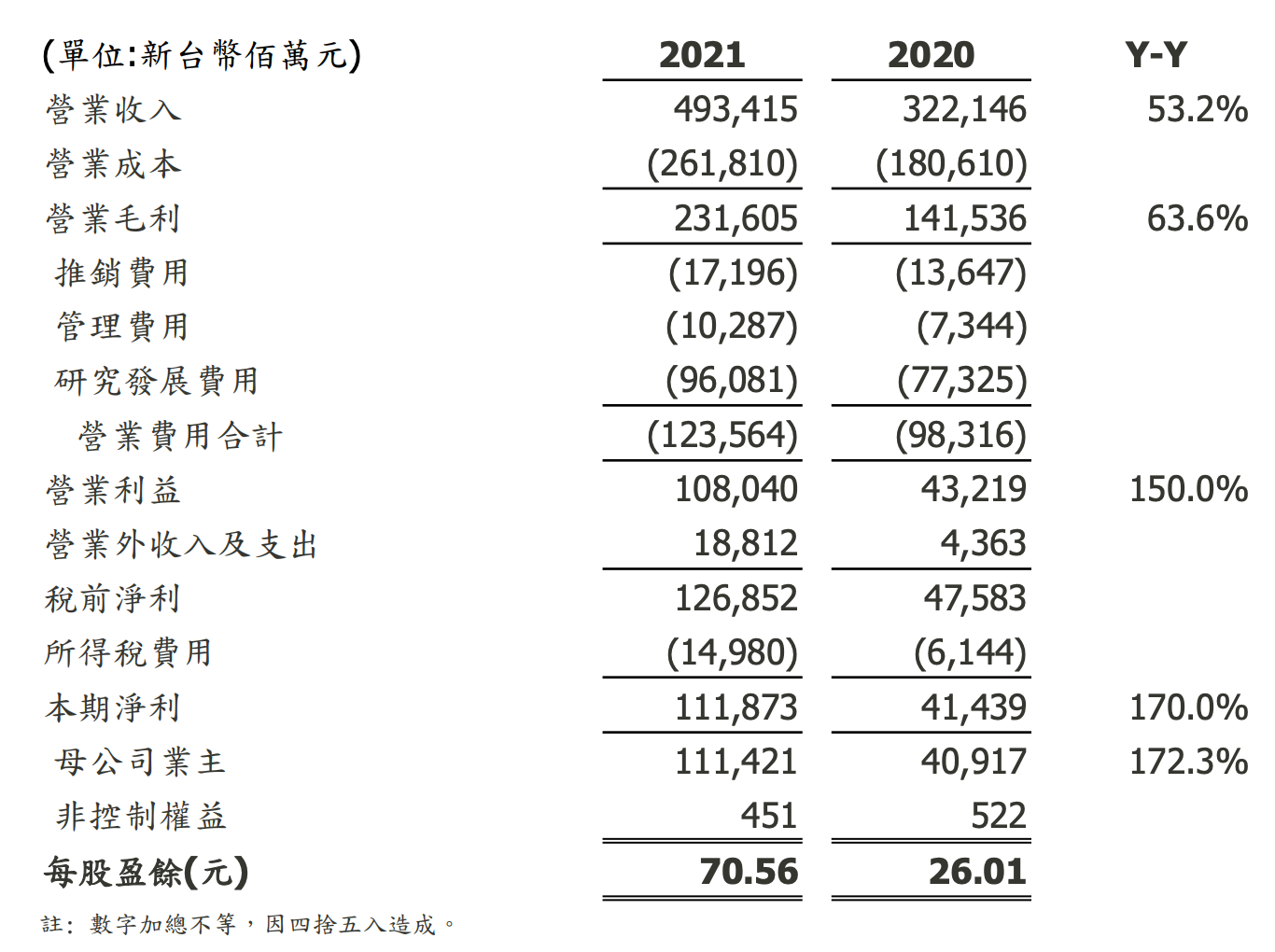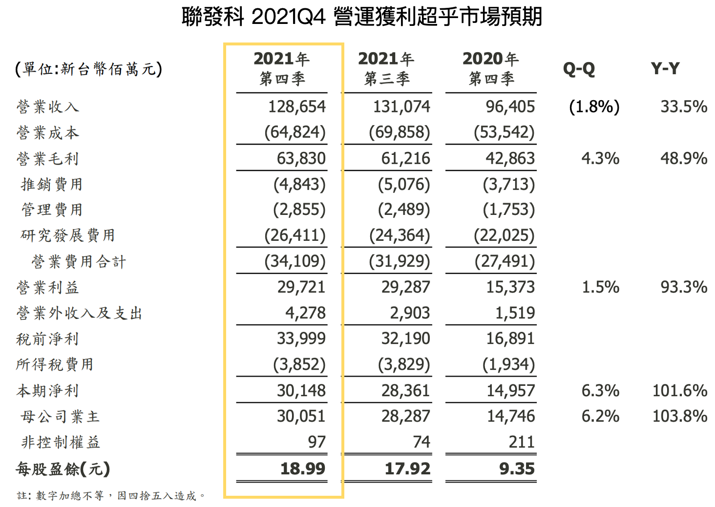 聯發科 2021 全年 EPS 達 70.56 元,創下歷史新高,且 2022Q1 也給出強勁的財測。