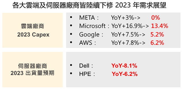 3.PC、手機庫存去化接近尾聲,伺服器需求則預計於 2023 下半年回溫