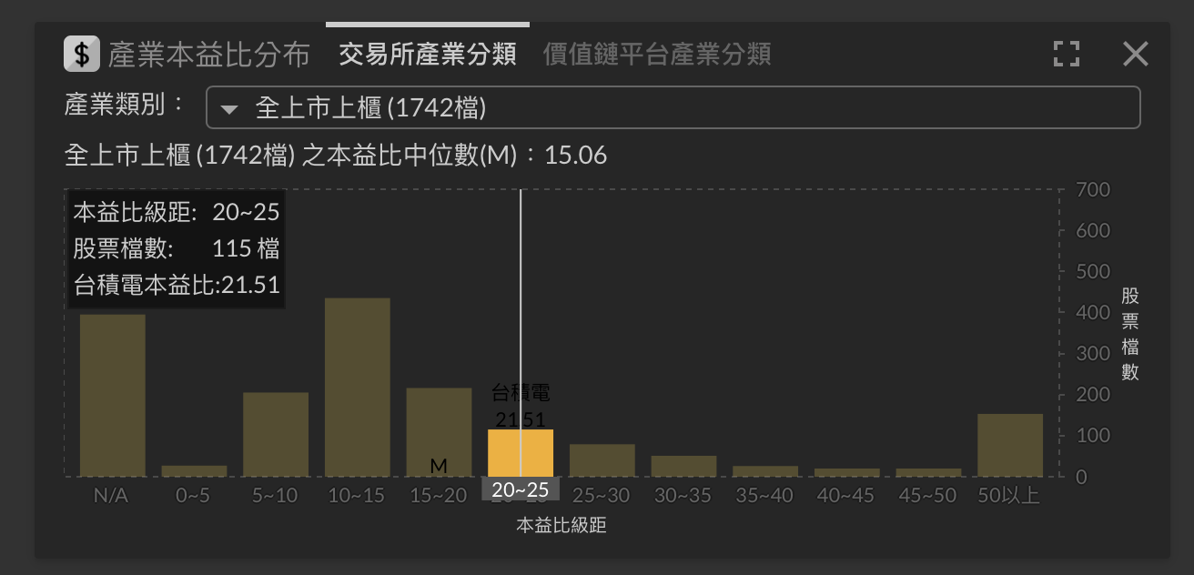 以目前評價來看,台積電本益比約 20 倍左右,雖已高於產業平均(可參考Fugle產業本益比分佈卡片),但考量到其產業的地位及未來的成長潛力,對長期投資人來說目前評價仍有投資價值。